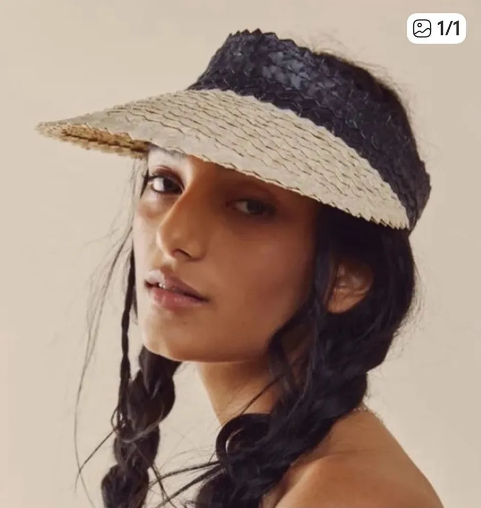 Adjustable size Free people woven straw hat visor Black and neutral tan color Beach boho coastal... Show more