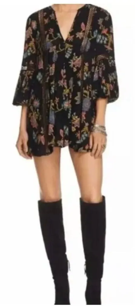 Free People black floral Just the Two of Us tunic blouse Size medium excellent condition Measures... Show more