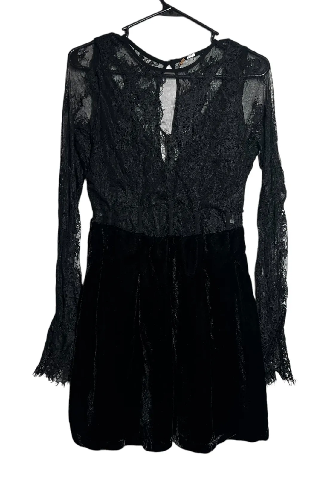 A gothic-inspired Free People mini dress blending black lace and velvet. This piece features a deep... Show more