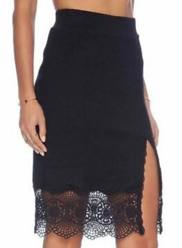 Free people black story teller skirt with lace size small Beautiful black skirt with embroidered dia... Show more