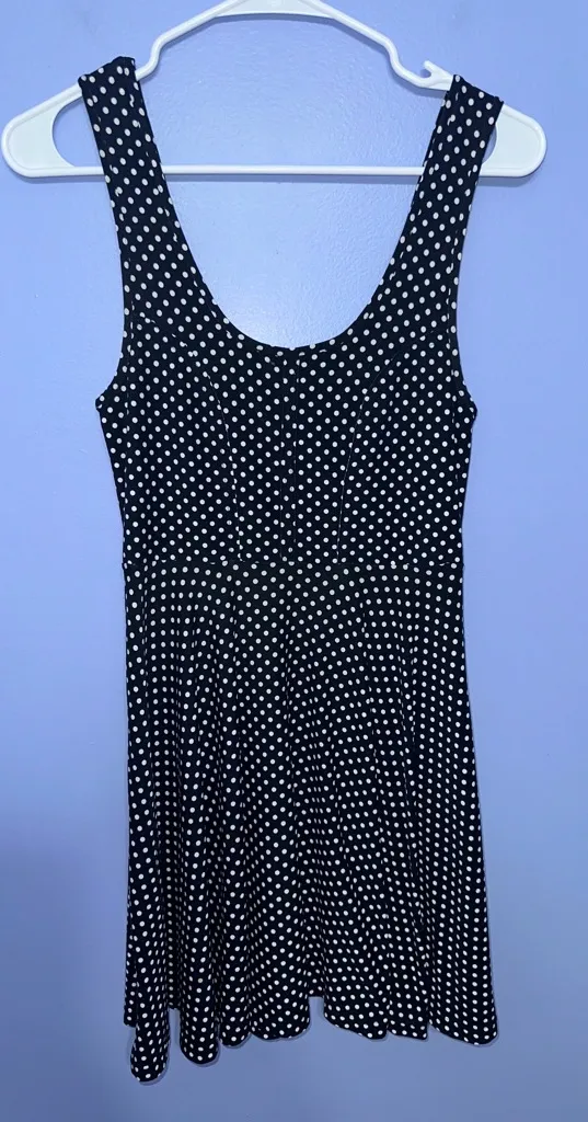 The product is a stylish Free People black and white polka dot fit and flare skater dress in size XS... Show more