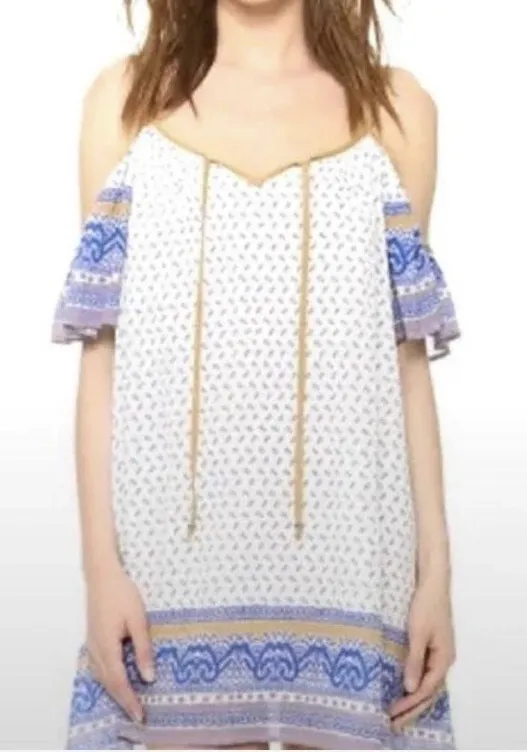 FREE PEOPLE-BLUE AND WHITE OFF SHOULDER DRESS-WOMENS SIZE LARGE Dress is fully lined, excellent cond... Show more