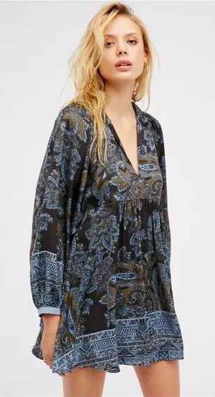 Free people floral, paisley printed tunic mini dress. Excellent condition 100% polyester All mea... Show more