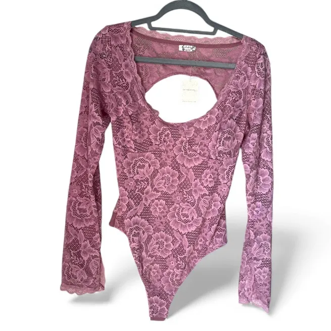 Free People bodysuit NEW Long Sleeve Floral lace intimately pink Split hem at wrist Large Mauve pi... Show more
