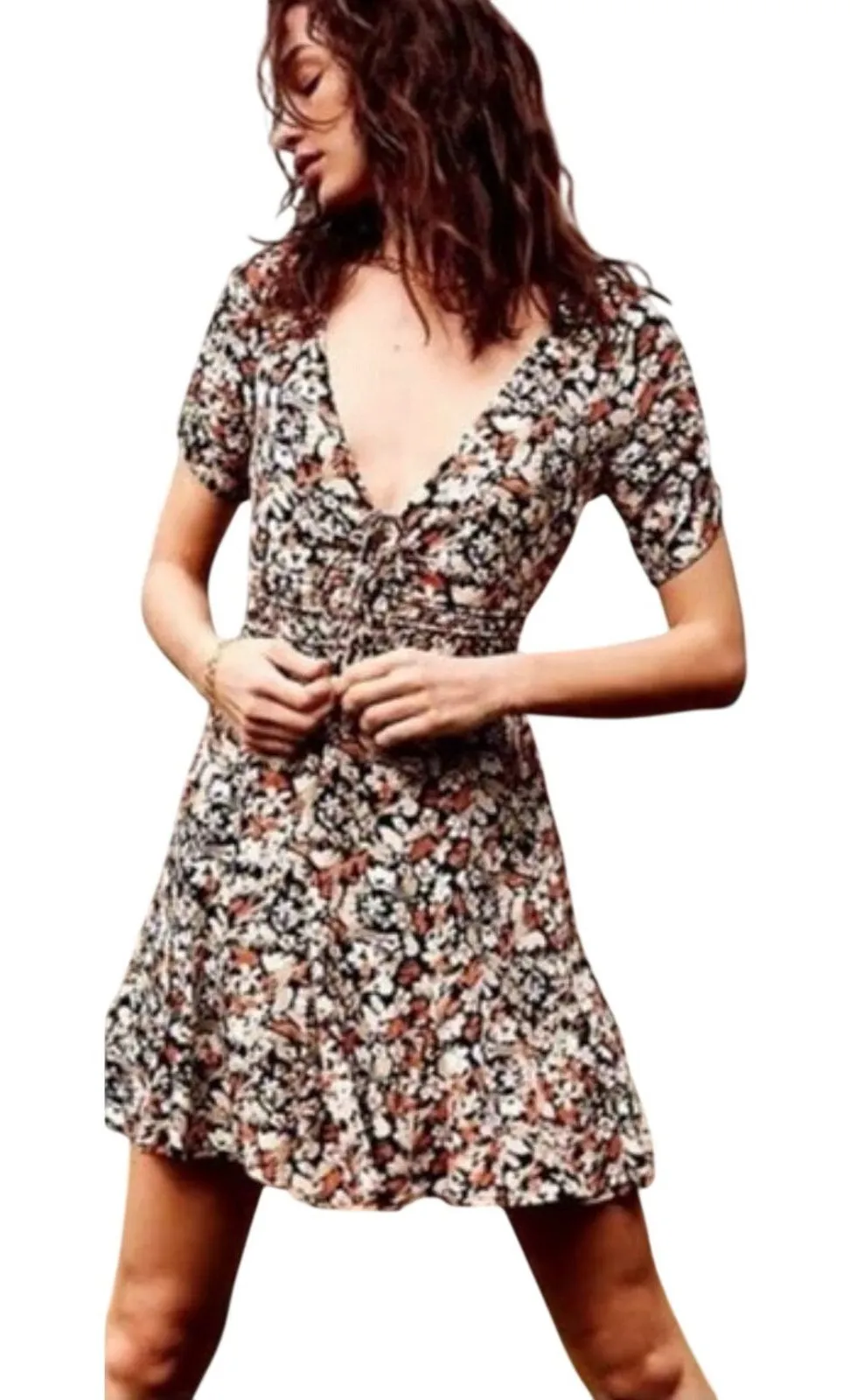 FREE PEOPLE Women’s Boho Forget Me Not Black, Pink and Orange Multi Floral Mini Fit and Flare Dress... Show more