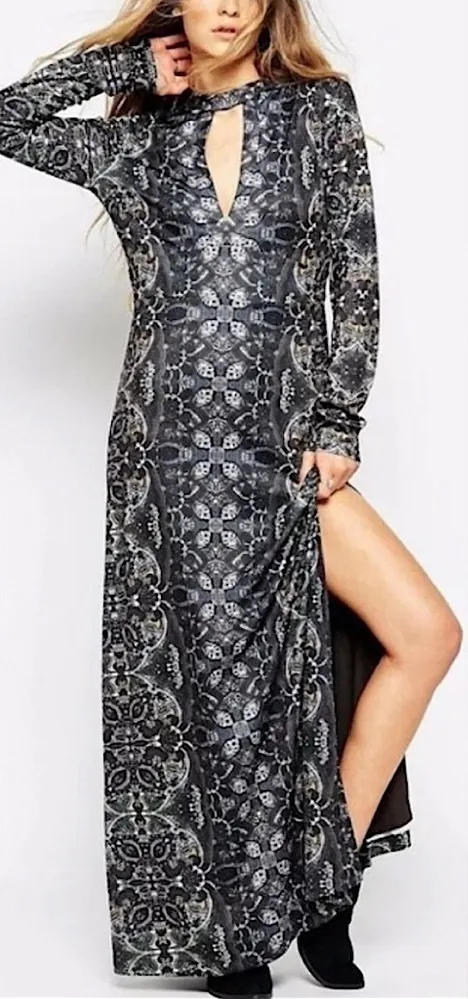 Free People Cabaret Kaleidoscope Cut Out Long Sleeve High Slit Maxi Dress Black Medium. OB434250. A... Show more
