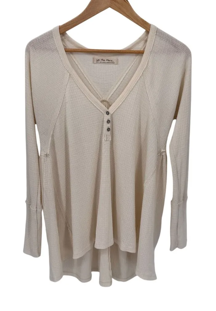 Free People Citrine Henley Thermal Top Womens Small - oversized Ecru Cream Cotton Polyeser Blend... Show more