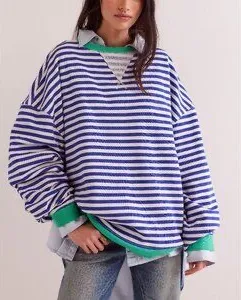 Free People Classic Striped Oversized Crewneck Blue And Green Combo Size Xs New No Tags ! Fit: R... Show more