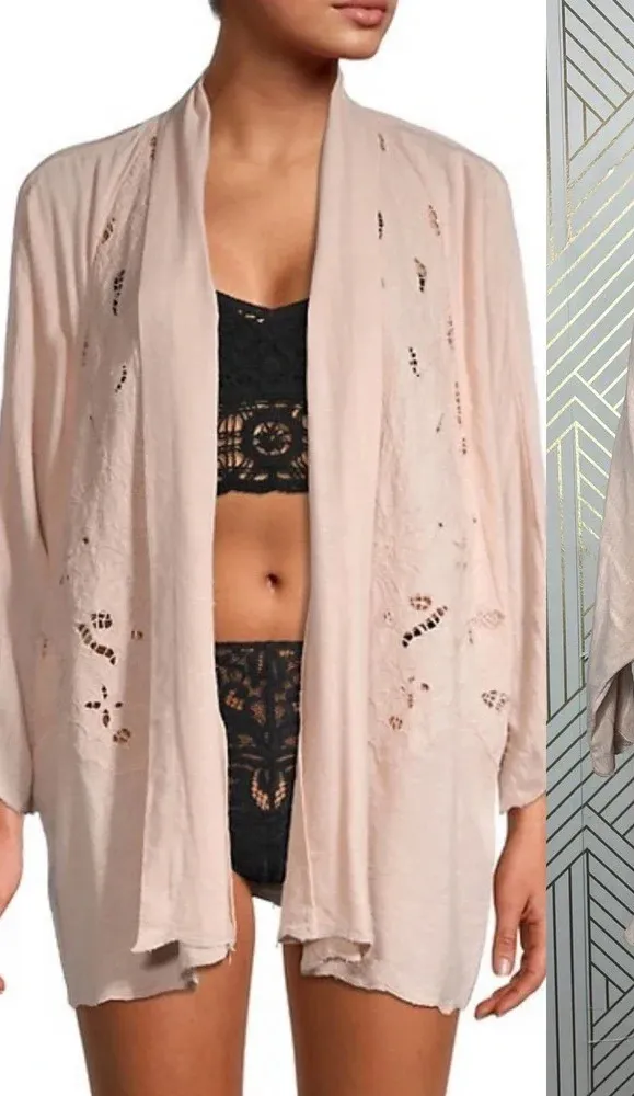 Free People Embroidered Floral Cotton-Blend Robe in Conch Pink. Get comfy in this so pretty cardigan... Show more