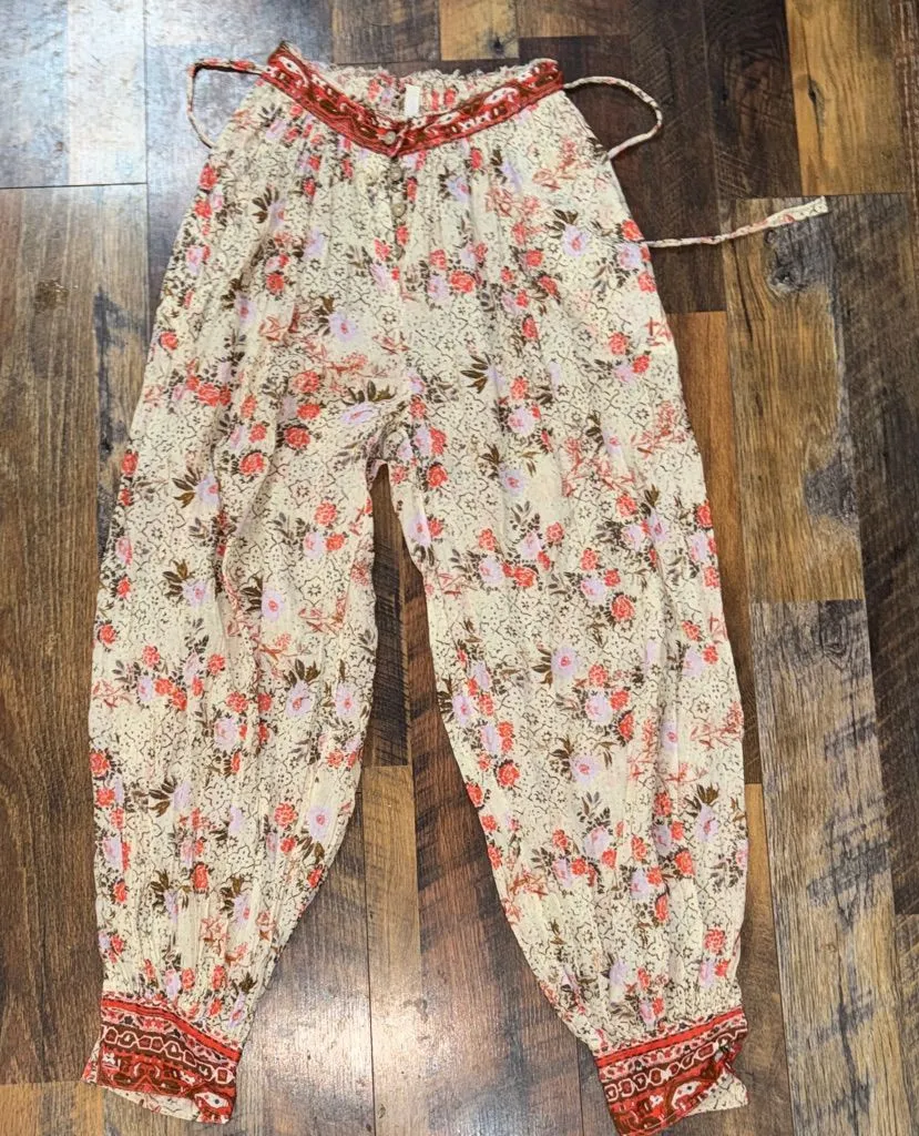 Chic floral design. Cream base with red accents. Perfect for casual outings.