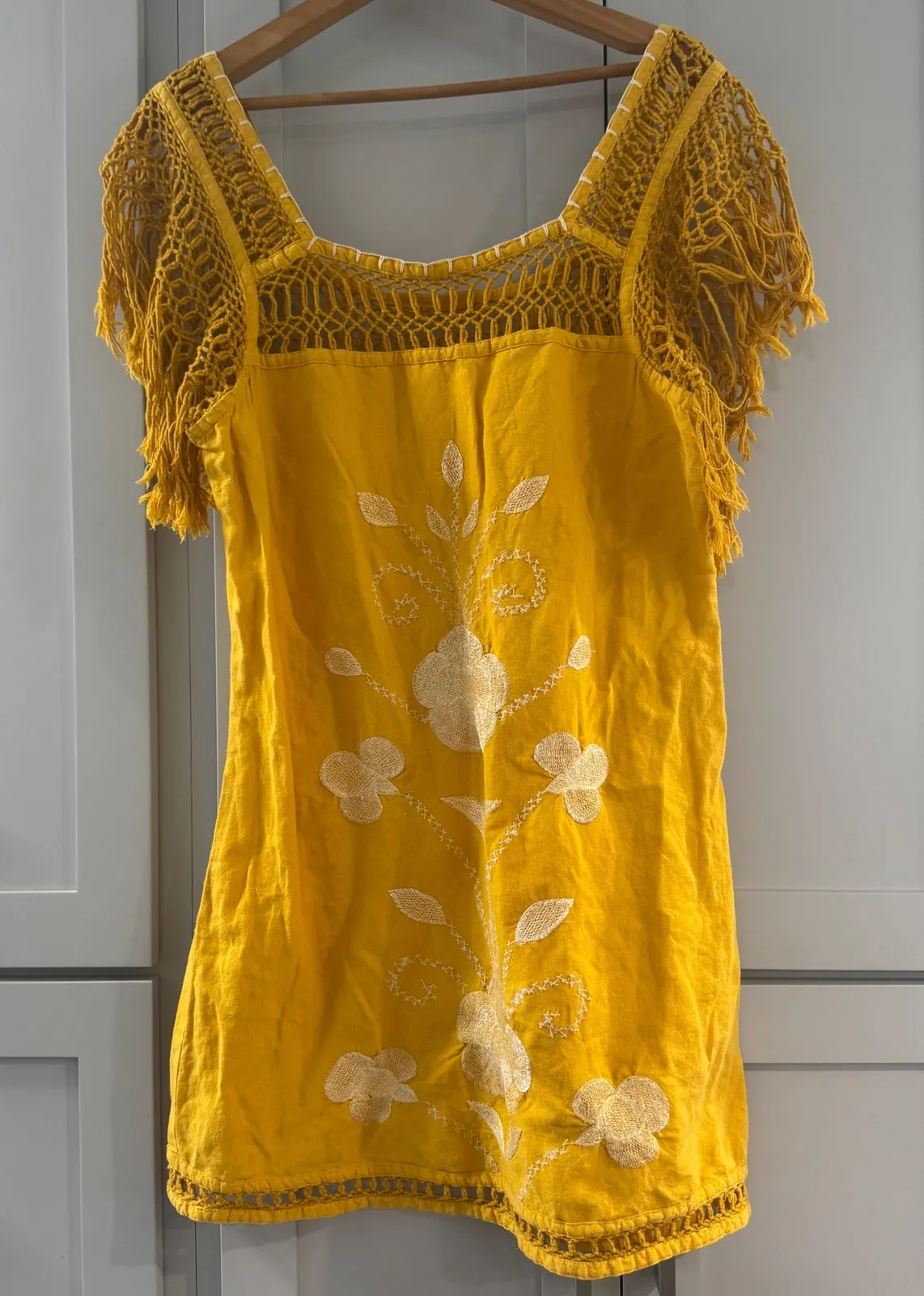 Eye-catching yellow dress that merges bohemian charm with modern design. Showcasing intricate croche... Show more