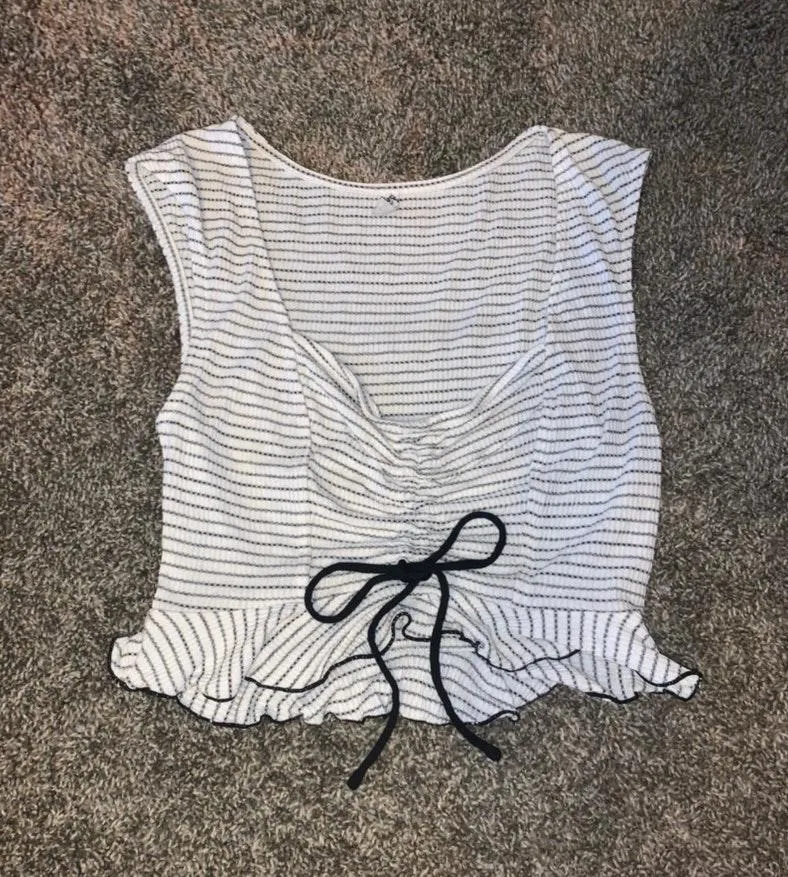 Black and White Gathered Crop top with adjustable tie front! Soo cute! Size Small but would best... Show more