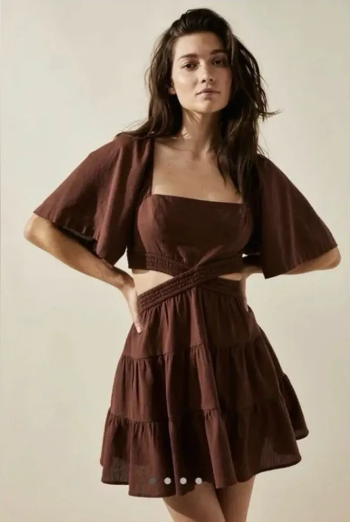 In good, pre-owned condition. Cotton/linen blend. Sleeves can be worn off shoulder or on. Cut outs o... Show more