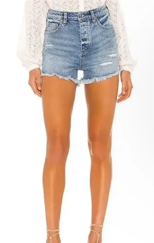 Free People CRVY Vintage High Rise Cut Off Style Jean Shorts New Hightide Blue Size 24 Excellen... Show more