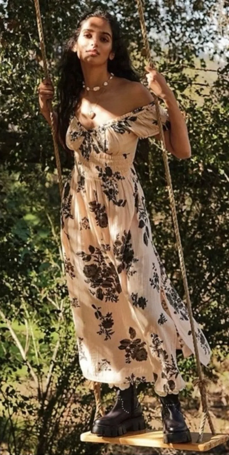 Free People Forget Me Not Midi Dress in Peach Combo No Overdye / Creme Size Large Laying Flat /... Show more