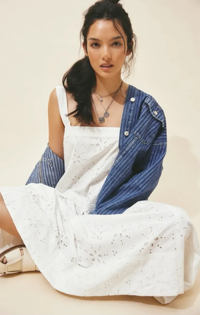 Free People Primavera Eyelet Midi Dress in Ivory White MSRP $168 Size XL Laying Flat / Approxim... Show more