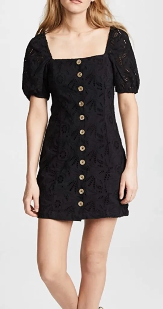 Free People Daniella Eyelet Elegant Black Lace Mini Dress Size 2. Great condition. Chic black mini... Show more