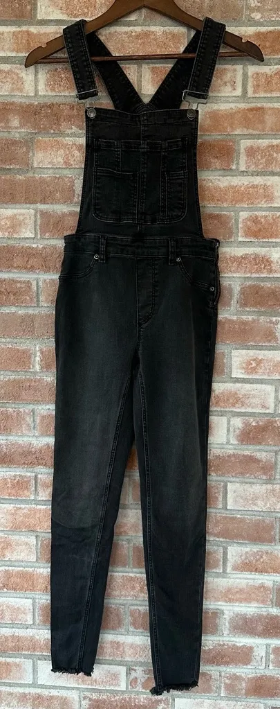 Women’s size 25 Free People black denim overalls. Skinny fit with raw hem. Straps are adjustable. Ex... Show more