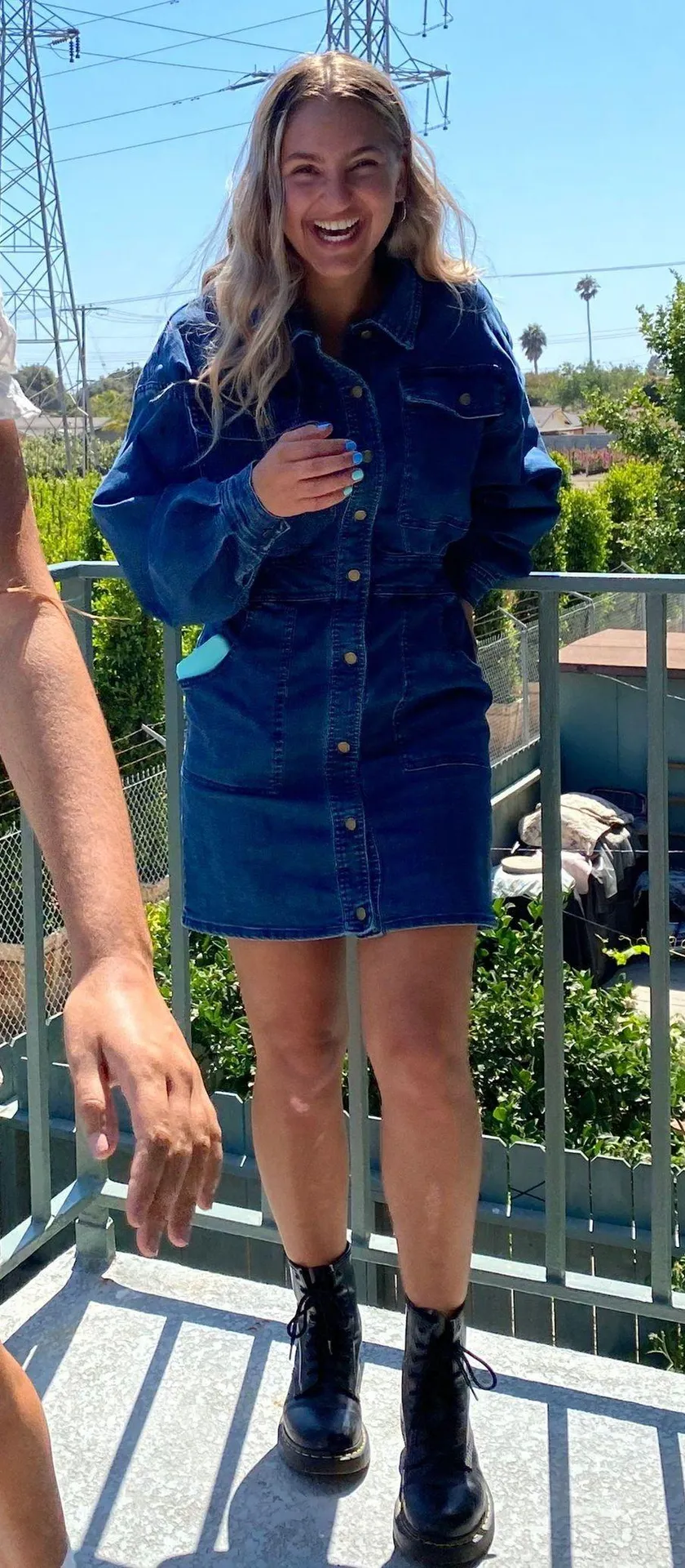 Mini dress buttons up so cute! Puffy sleeves long sleeve