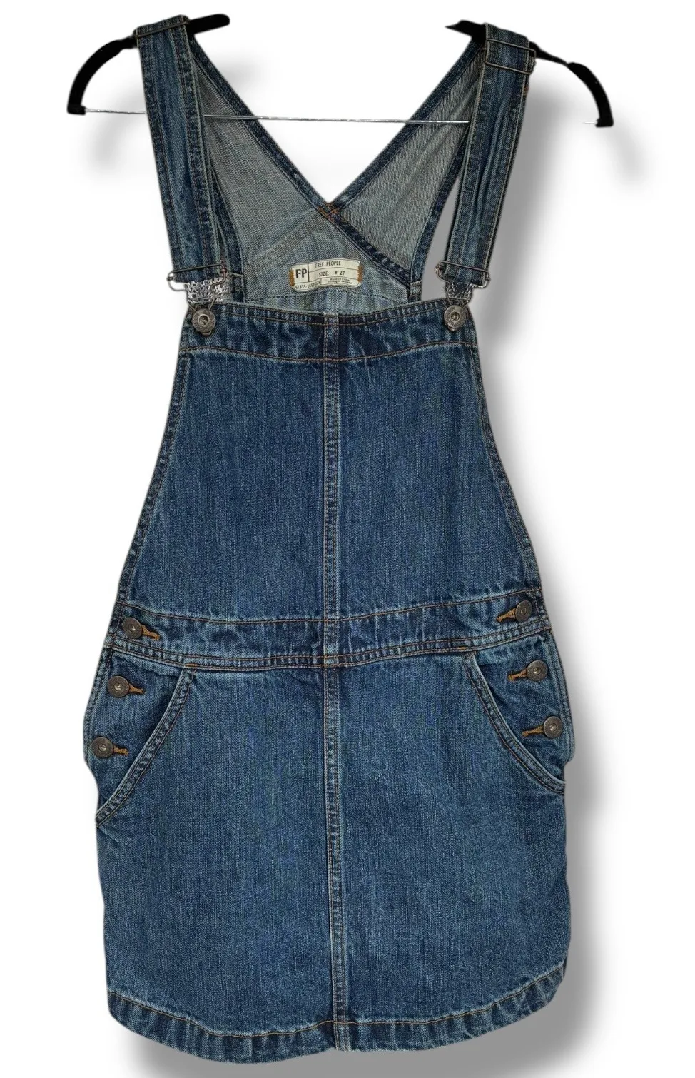 Free People denim overall dress in size W27. Made from 100% cotton with a classic blue wash, this pi... Show more
