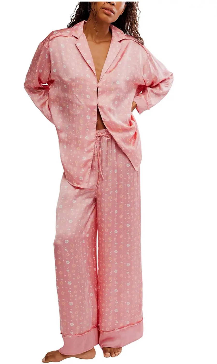 So essential pajama set featured in a soft printed fabrication and oversized silhouette with a long-... Show more