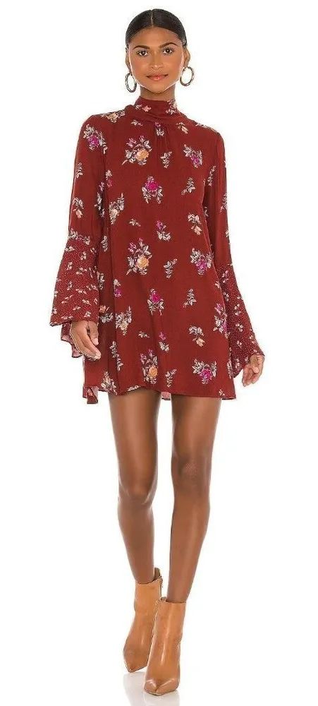 Pull on styling Back neck tie closure Side seam pockets Long sleeves Bell sleeves Unlined 100% visco... Show more