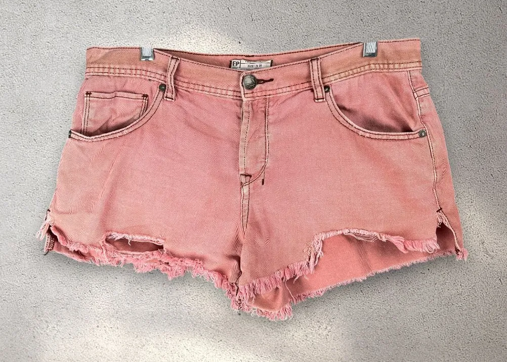 free people dusty pink shorts 🌸 soft + worn-in denim in a cute faded pink shade. high rise with fra... Show more
