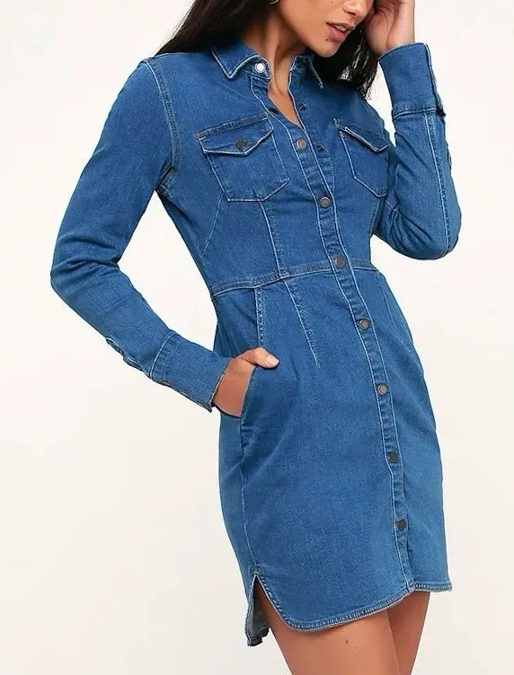 Free People Dynomite Denim Mini Shirt Dress Size S Color Blue Condition New With Tags Measurements... Show more