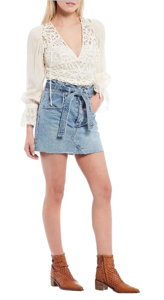 Retail: $78 – New with Tags Style meets comfort in this Free People East of Eden denim mini skirt i... Show more