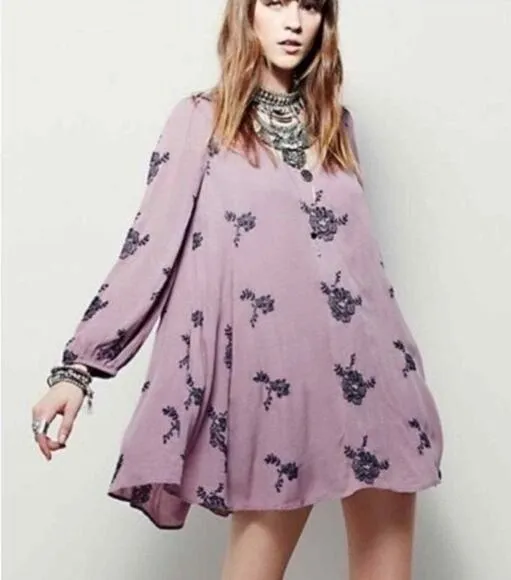 Relaxed fit Long sleeve Flowy swing dress with beautiful floral embroidered design Elastic band at b... Show more