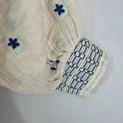Free People embroidered detail boho crinkle jumpsuit in ecru Pockets gauze cotton Balloon sleeves an... Show more