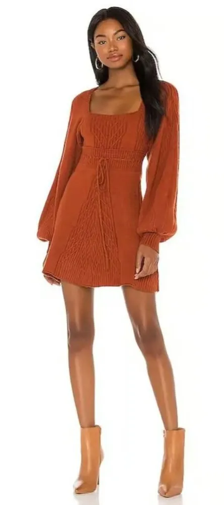 Free People Emmaline Mini Sweater Dress Cut Out Back in Burnt Orange Small Front drawstring fastenin... Show more