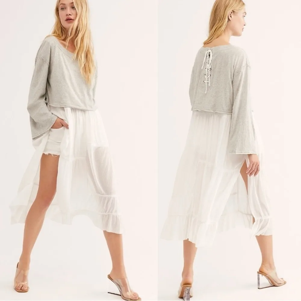 Free People Layered Tunic Midi Dress Size XS Bell Sleeve Semi Sheer Skirt NWT New With Tags MS... Show more