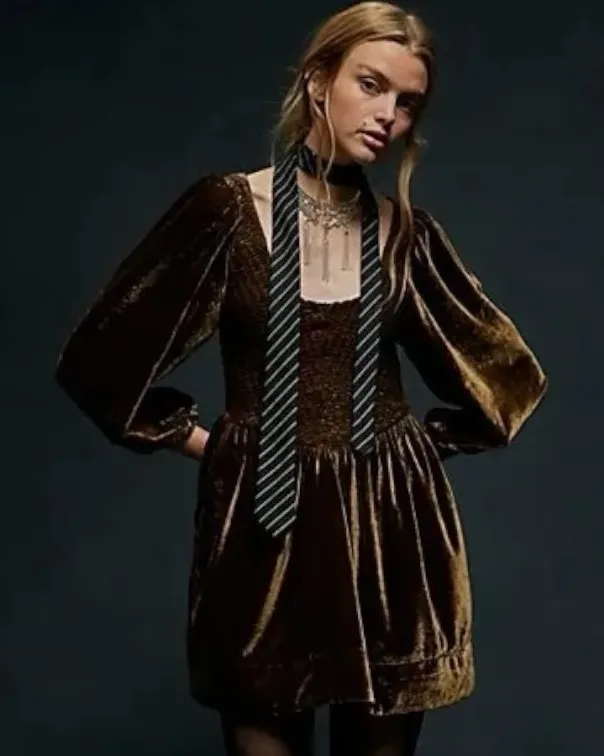 Free People Farrier Velvet Mini Dress in Brown Bear Size Medium Laying Flat / Approximately Ar... Show more