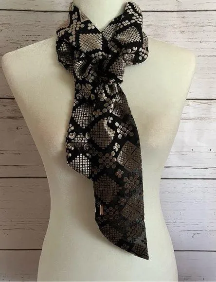 Black and tan velvet flocked scarf by Free People, semi sheer double layer scarf with geometric desi... Show more