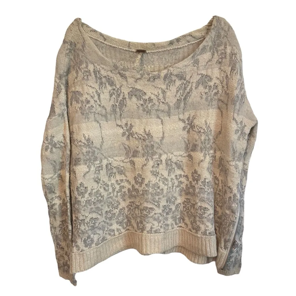 Free People Side Zipper Grey White Knit Sweater Floral Grayscale Stripes Striped Stripe Size Small... Show more