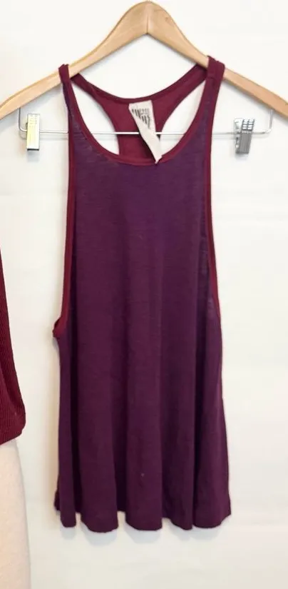 2 high neck, flowy tanks from free people 1 is two toned maroon Other is solid Excellent condition... Show more