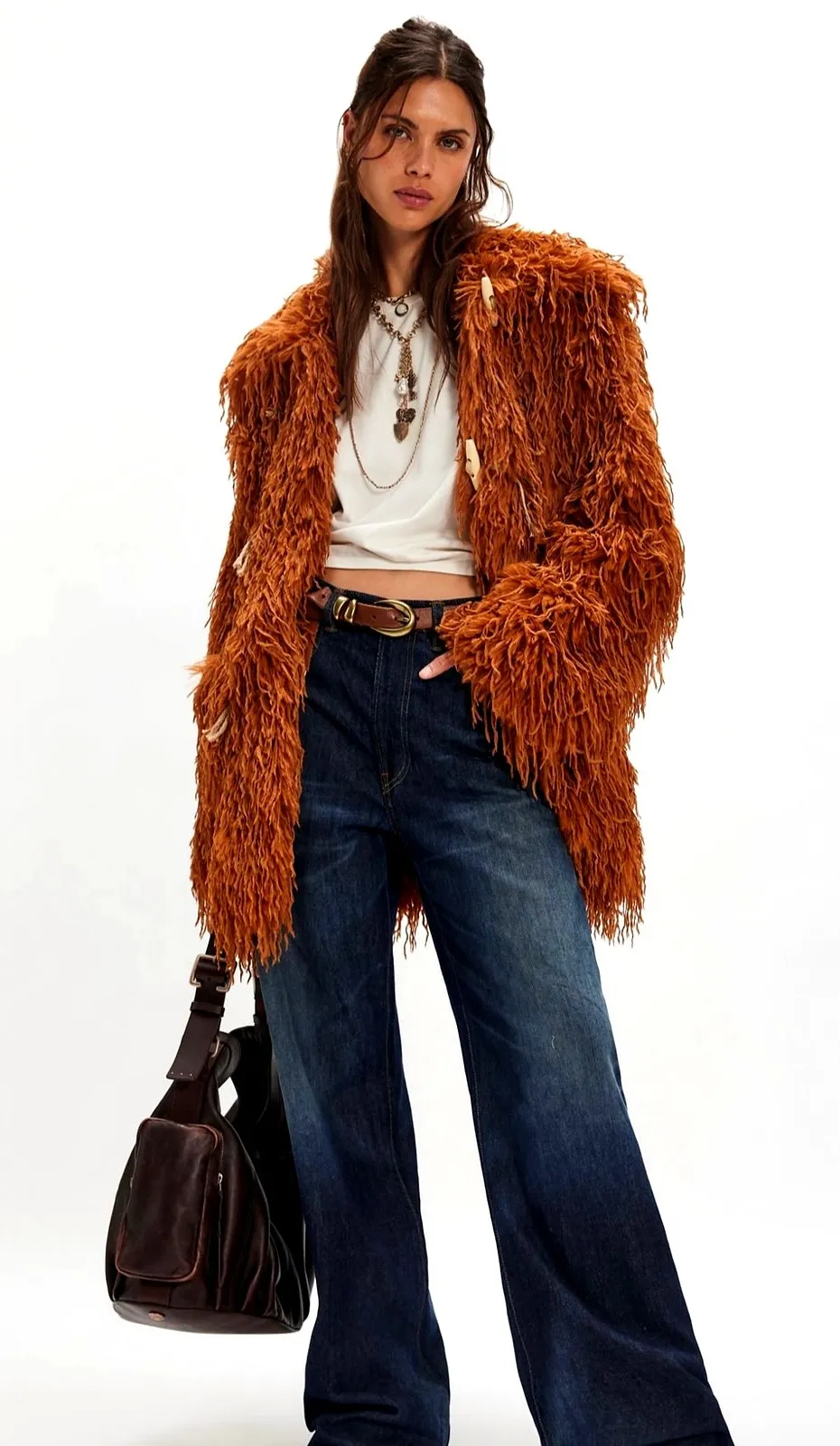MSRP $268.00 Go bold with this eye-catching layer, featuring a shaggy faux fur fabrication, a slouc... Show more