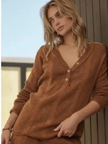 FP BEACH Henley Brown Oversized Buttons Sweater. Size XS Excellent pre-owned condition Measurement... Show more