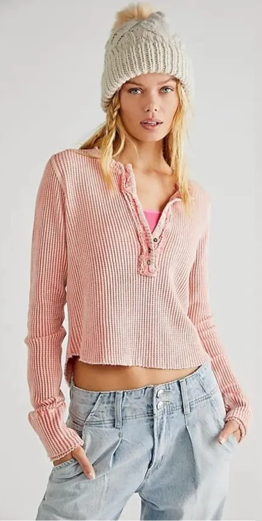 Free People Fp One Colt Thermal in Blush Size Small Laying Flat / Approximately Armpit to Armpi... Show more