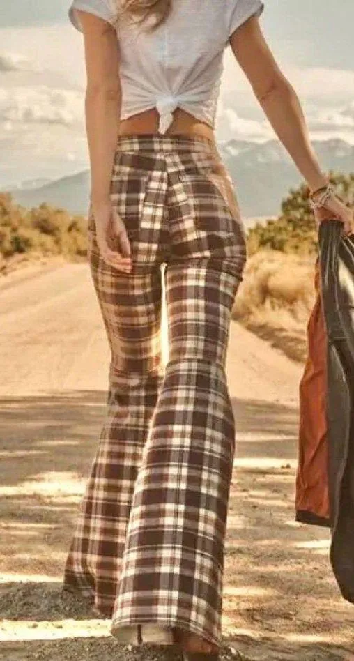 Free People plaid flare jeans Size 26" Waist measure flat: 12.5" Inseam 31" Brand tag has been mar... Show more
