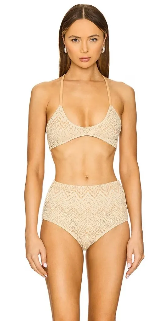 free-est Billie Crochet High-Waist Bikini Bottoms Size Small in Sand Style No. 92997519; Color Cod... Show more