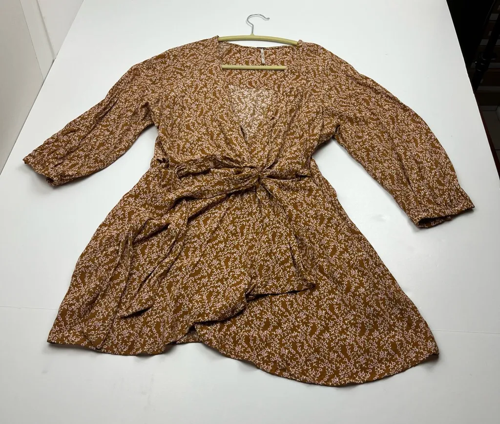 Free People Floral Clara Mini Dress Tunic Top Womens Medium Brown Pink White Floral print wrap styl... Show more