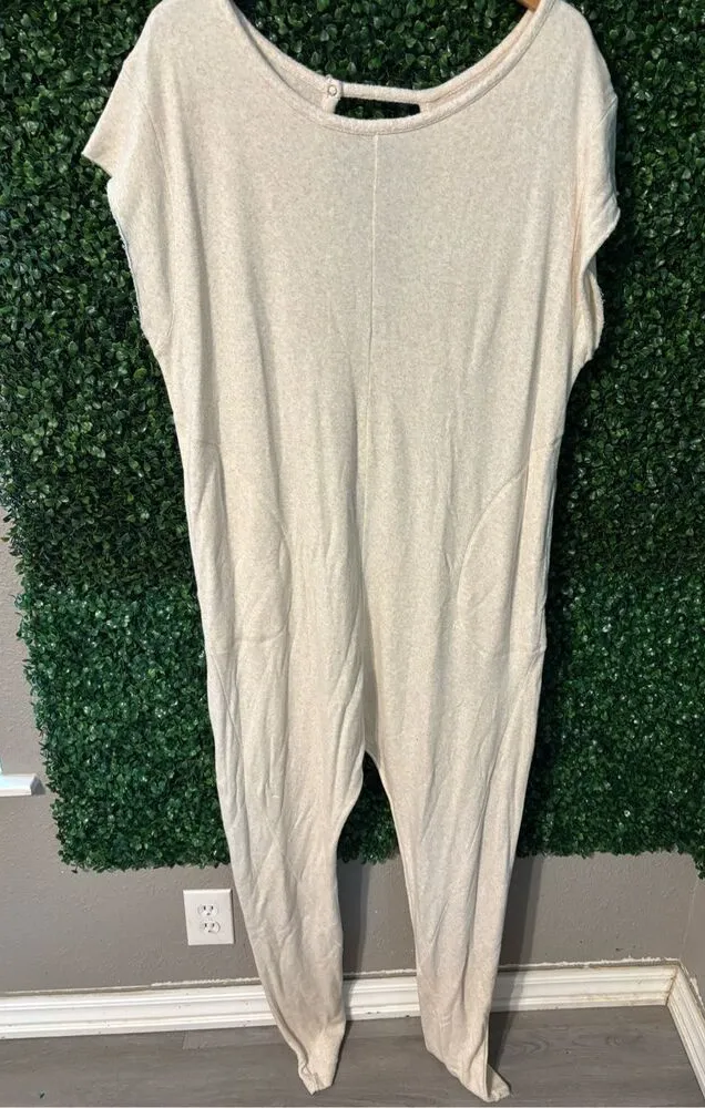 Free People Intimately Pillow Talk Romper Cream Soft Sz Large -31 Inch Inseam -So Soft and Slouchy... Show more