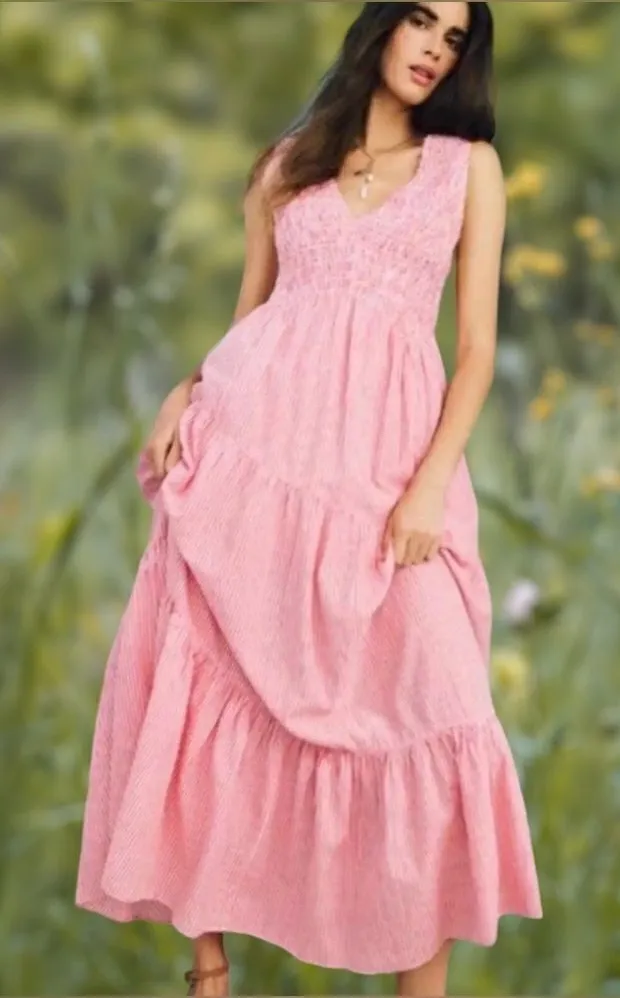 Free People Juno Sleeveless Smocked Tiered Maxi Dress Guava Combo This summery sleeveless maxi is cr... Show more