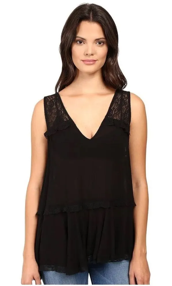 ✨Free People Lace Trapeze Top Size: Small Color: Black Material: 100% Rayon Retails: $78 BIN... Show more
