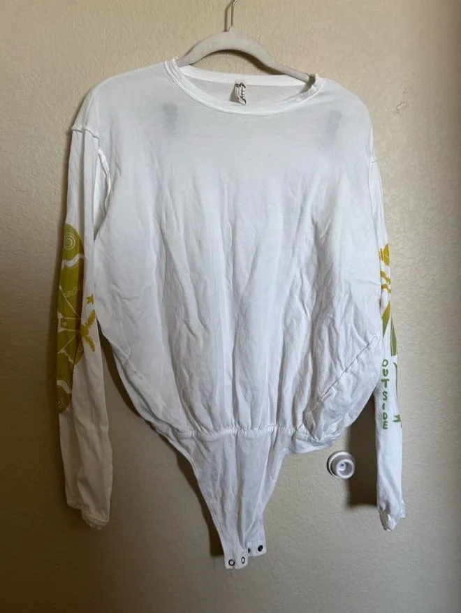 100% Cotton Size Small fits nicely oversized ptp: 10 Semi - Sheer Snaps Love the Printed Sleeve... Show more