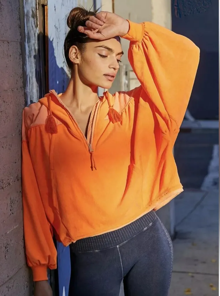 Free People Movement Let It Go Sweatshirt Hood Zip Neon Orange Velour M Excellent condition Free Pe... Show more
