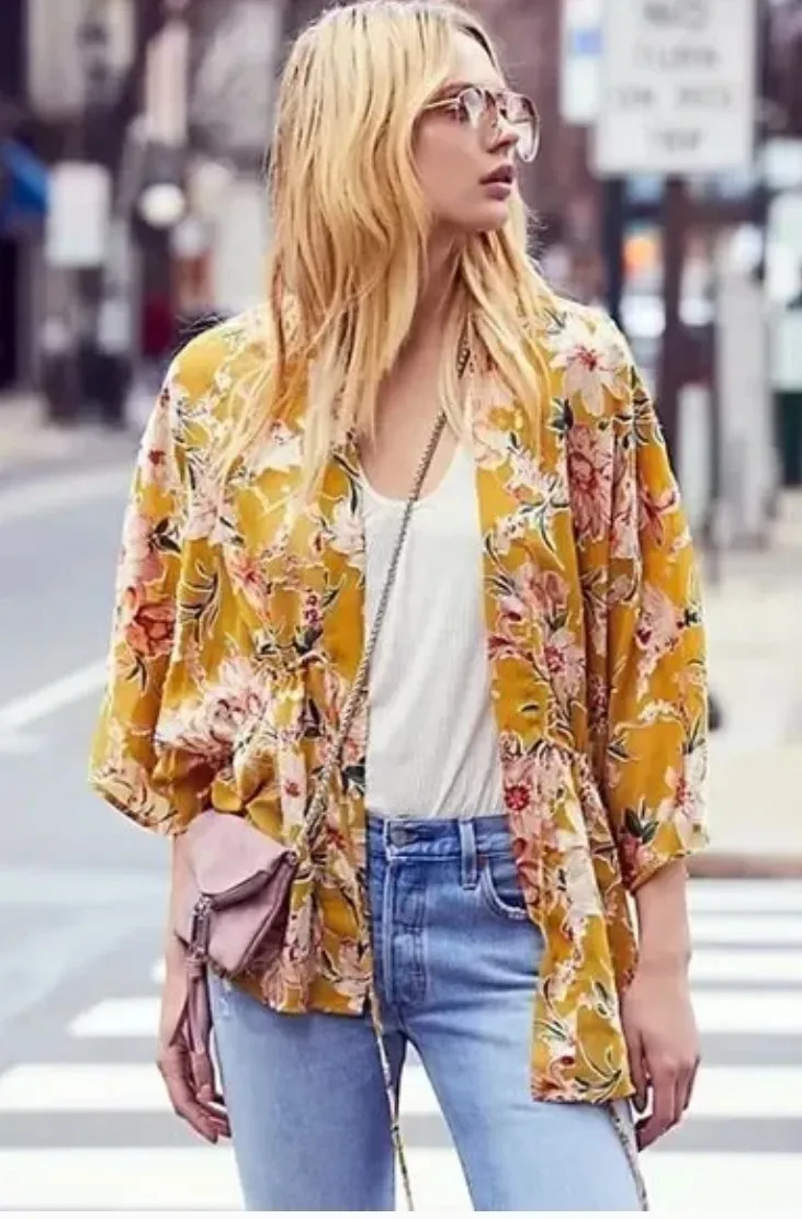 Free People Only In Dreams Burnout Kimono Women's OS Gold Tie Waist Top Blouse One Size • Approxim... Show more
