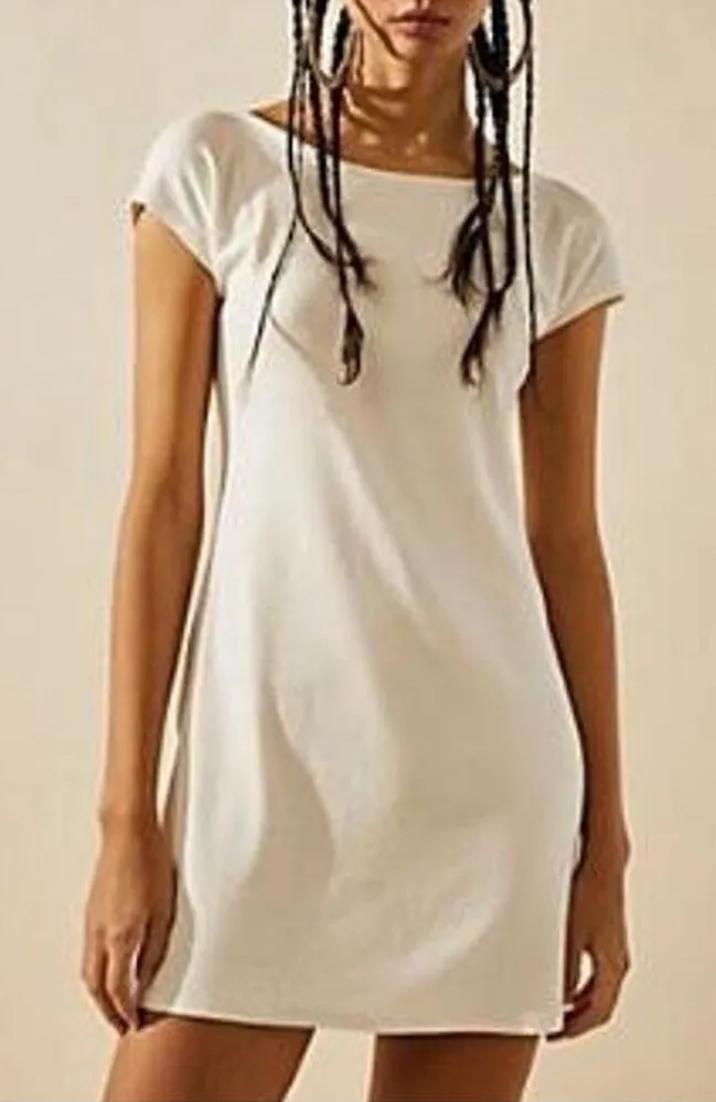 Free People Rosalia, Good Feels, open back, white, knit, mini dress. Comfortable to wear on its oven... Show more